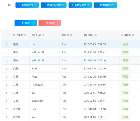 多个账户统一管理及分配:以账户管理为核心,对多个柜台帐户进行统一归集,并根据公司策略与布局再分配相应的交易账户与风控账户,规范交易流程。