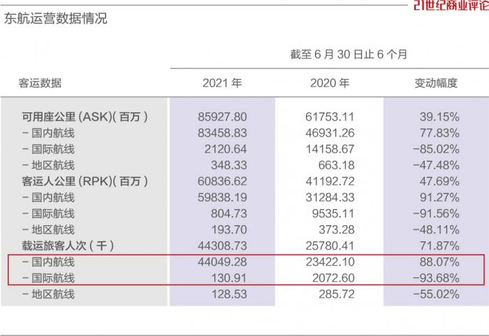 东方航空2021年半年度报告截图