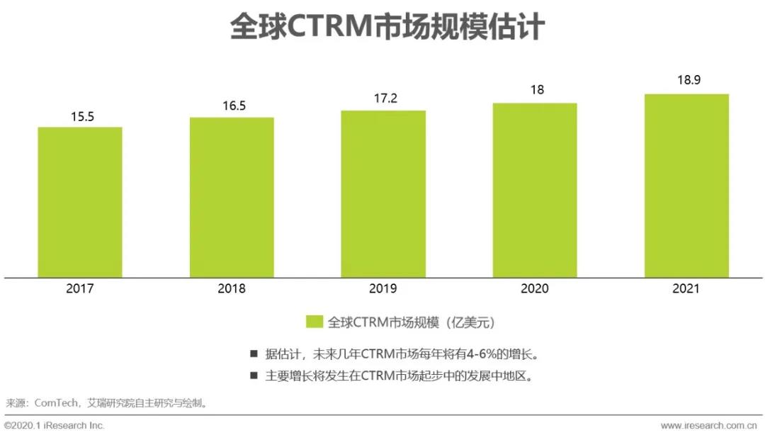 近年来,全球CTRM市场不断扩大,据估计,2020年全球CTRM市场规模将达到18亿美元。